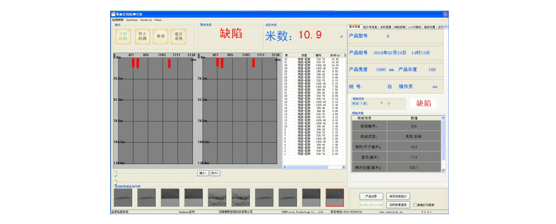自動(dòng)聲光報(bào)警,同時(shí)在系統(tǒng)界面顯示當(dāng)前缺陷的具體圖像及信息